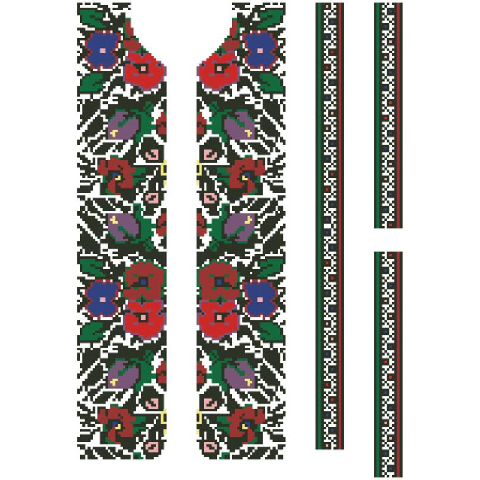 • Відріз тканини 45x75 см, 30x50 см, 40x37 см (2 шт) із нанесеним малюнком-схемою