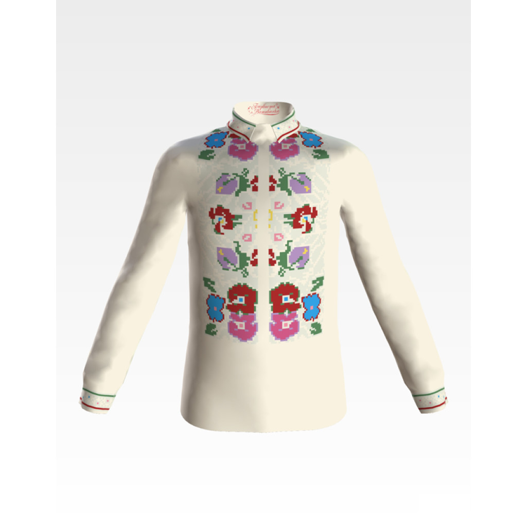 Заготовка для вишивки дитячої сорочки Борщівська сучасна призначена для часткової зашивки бісером або нитками. Схема надрукована на бежевому батисті екологічно чистими фарбами, які залишаються стійкими після прання. Тканина розкроєна з урахуванням необхідного запасу для зручності у роботі та подальшого пошиття виробу.