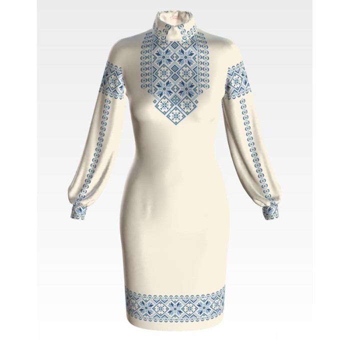 ПЛ049пБнннн Барвиста вишиванка Заготовка для вишивки - Сукня жіноча Класична р.42-54 габардин, білий