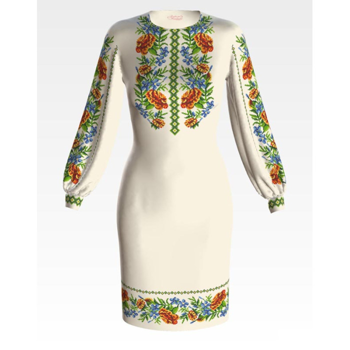 ПЛ491пБнннн Барвиста вишиванка Заготовка для вишивки - Сукня жіноча Класична р.42-54 габардин, білий