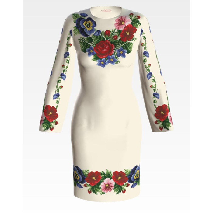 ПЛ194пБнннн Барвиста вишиванка Заготовка для вишивки - Сукня жіноча Виноград р.42-54 габардин, білий