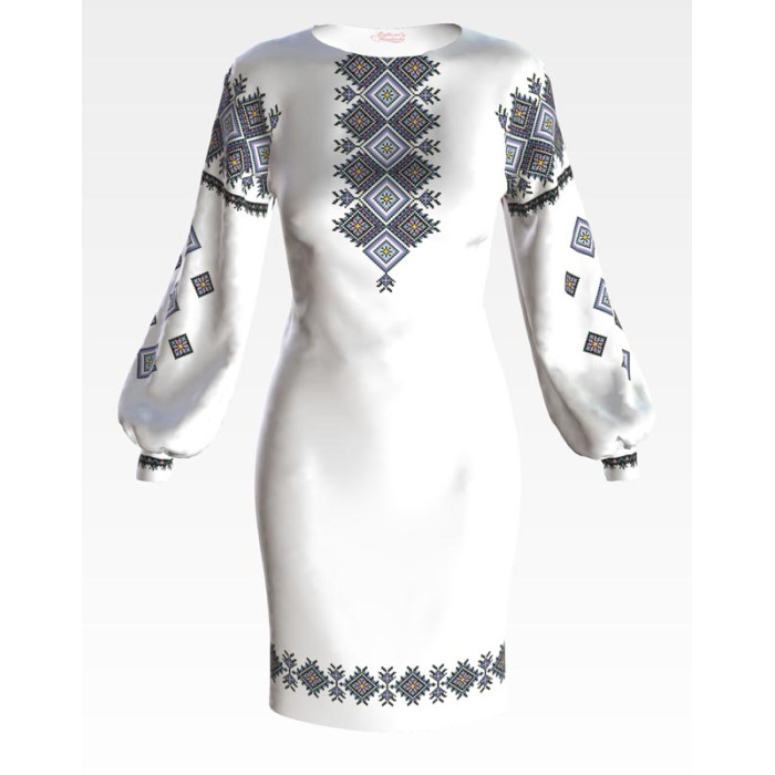 ПЛ107пБнннн Барвиста вишиванка Заготовка для вишивки - Сукня жіноча Берегиня р.42-54 габардин, білий