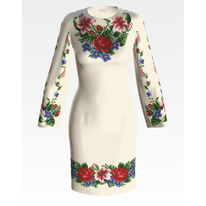 ПЛ521лМнннн Барвиста вишиванка Заготовка для вишивки - Сукня жіноча Яблуневий цвіт р.42-54 , бежевий