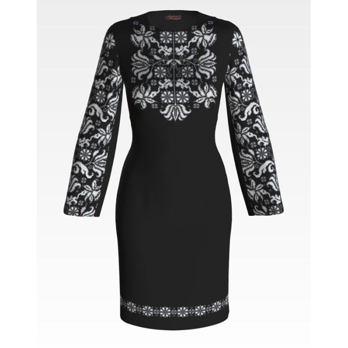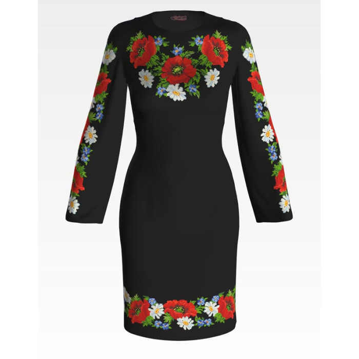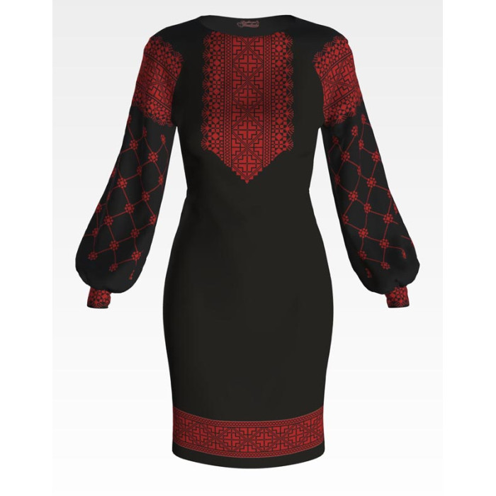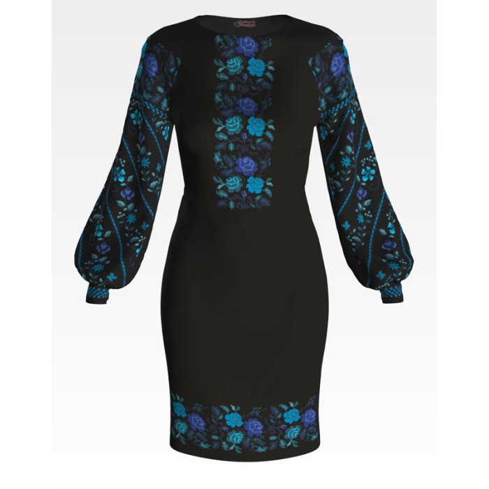 ПЛ092лЧнннн Барвиста вишиванка Заготовка для вишивки - Сукня жіноча Буковинська р.42-54 льон, чорний
