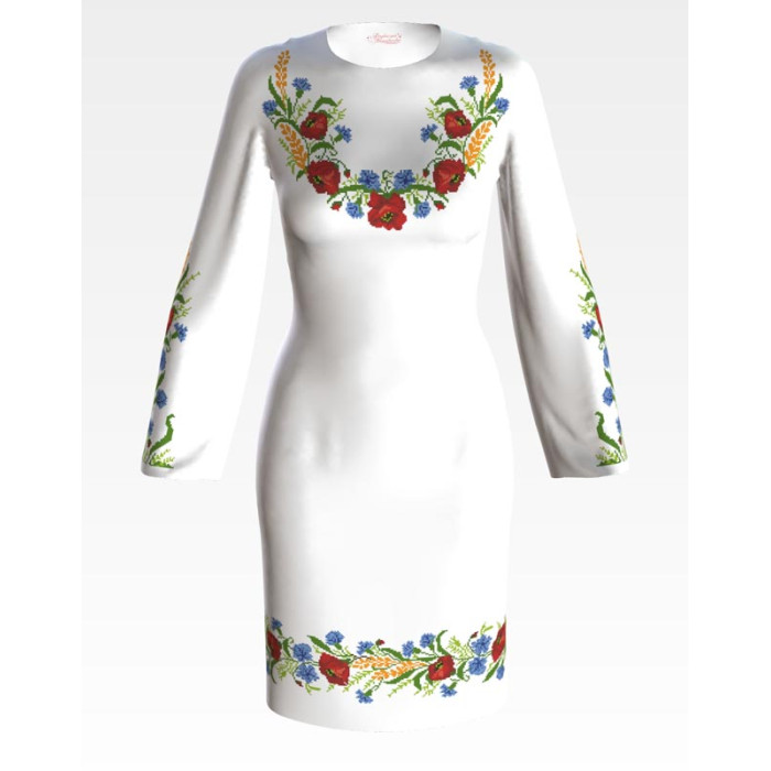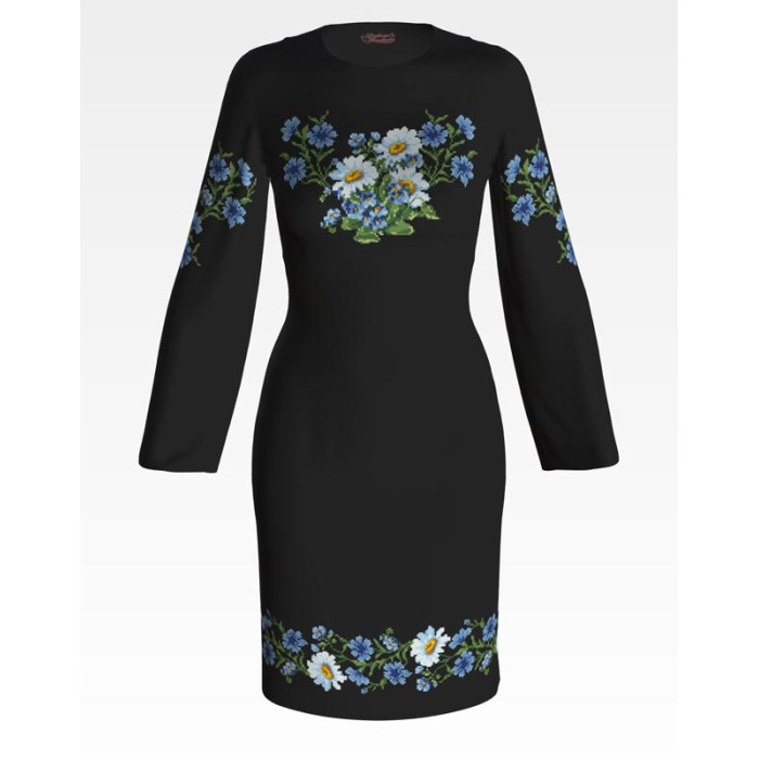 ПЛ018лМнннн Барвиста вишиванка Заготовка для вишивки - Сукня жіноча Сині квіти р.42-54 льон, бежевий