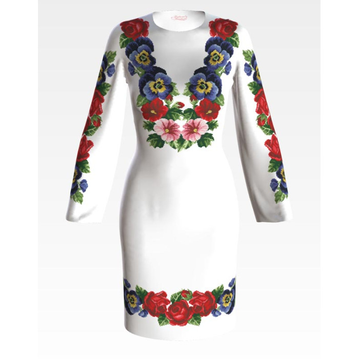 ПЛ057лБнннн Барвиста вишиванка Заготовка для вишивки - Сукня жіноча Ніжна калина р.42-54 льон, білий