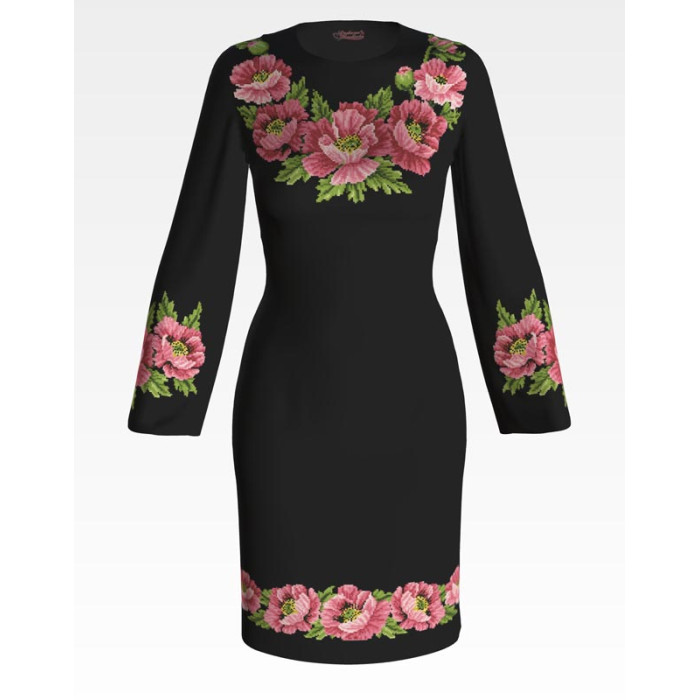ПЛ042шЧнннн Барвиста вишиванка Заготовка для вишивки - Сукня жіноча Маки рожеві р.42-54 шовк, чорний