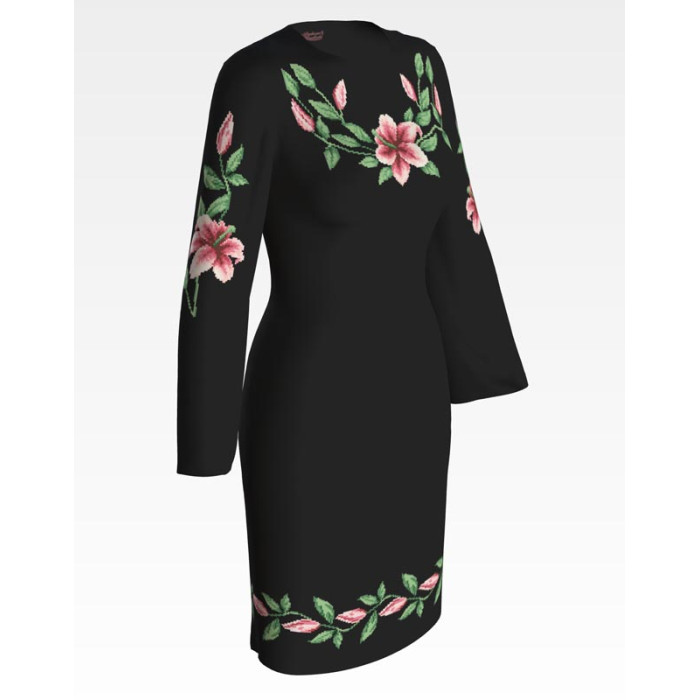 ПЛ002лЧнннн Барвиста вишиванка Заготовка для вишивки - Сукня жіноча Лілеї р.42-54 льон, чорний