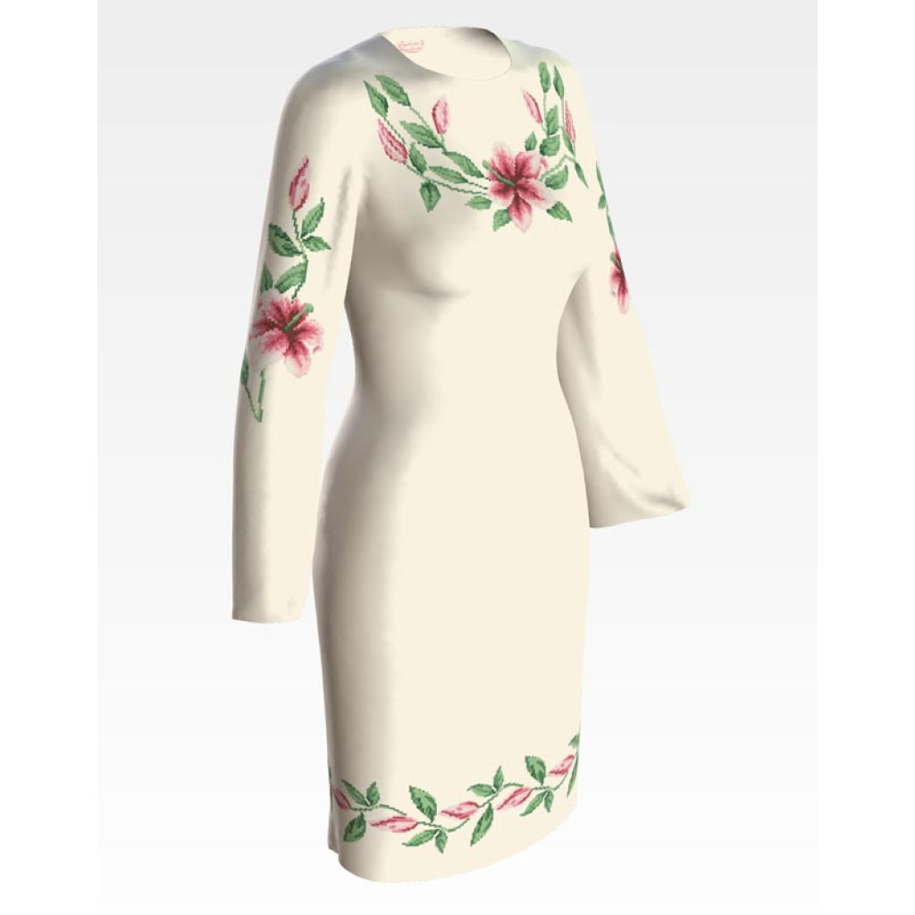 Заготовка для вишивки жіночої сукні Лілеї призначена для часткової зашивки бісером або нитками. Схема надрукована на льоні бежевого кольору екологічно чистими стійкими фарбами, що не змиваються після прання. Відрізи розкроєні з урахуванням необхідних запасів для зручного вишивання та подальшого пошиття виробу.