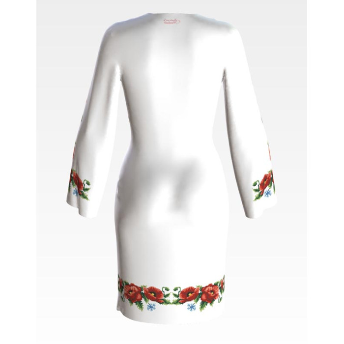 Заготовка для вишивки жіночої сукні Маки, волошки призначена для часткової зашивки бісером або нитками. Схема надрукована на льоні білого кольору екологічно чистими стійкими фарбами, що не змиваються після прання. Відрізи розкроєні з урахуванням необхідних запасів для зручного вишивання та подальшого пошиття виробу.