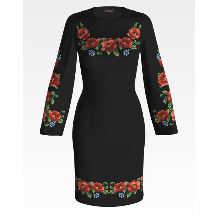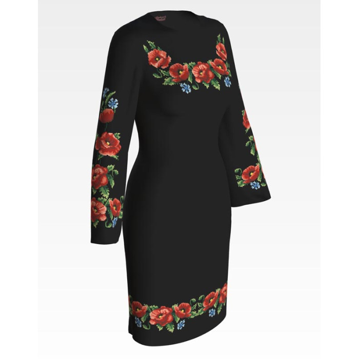 ПЛ003шЧнннн Барвиста вишиванка Заготовка для вишивки - Сукня жіноча Маки, волошки р.42-54 шовк, чорний