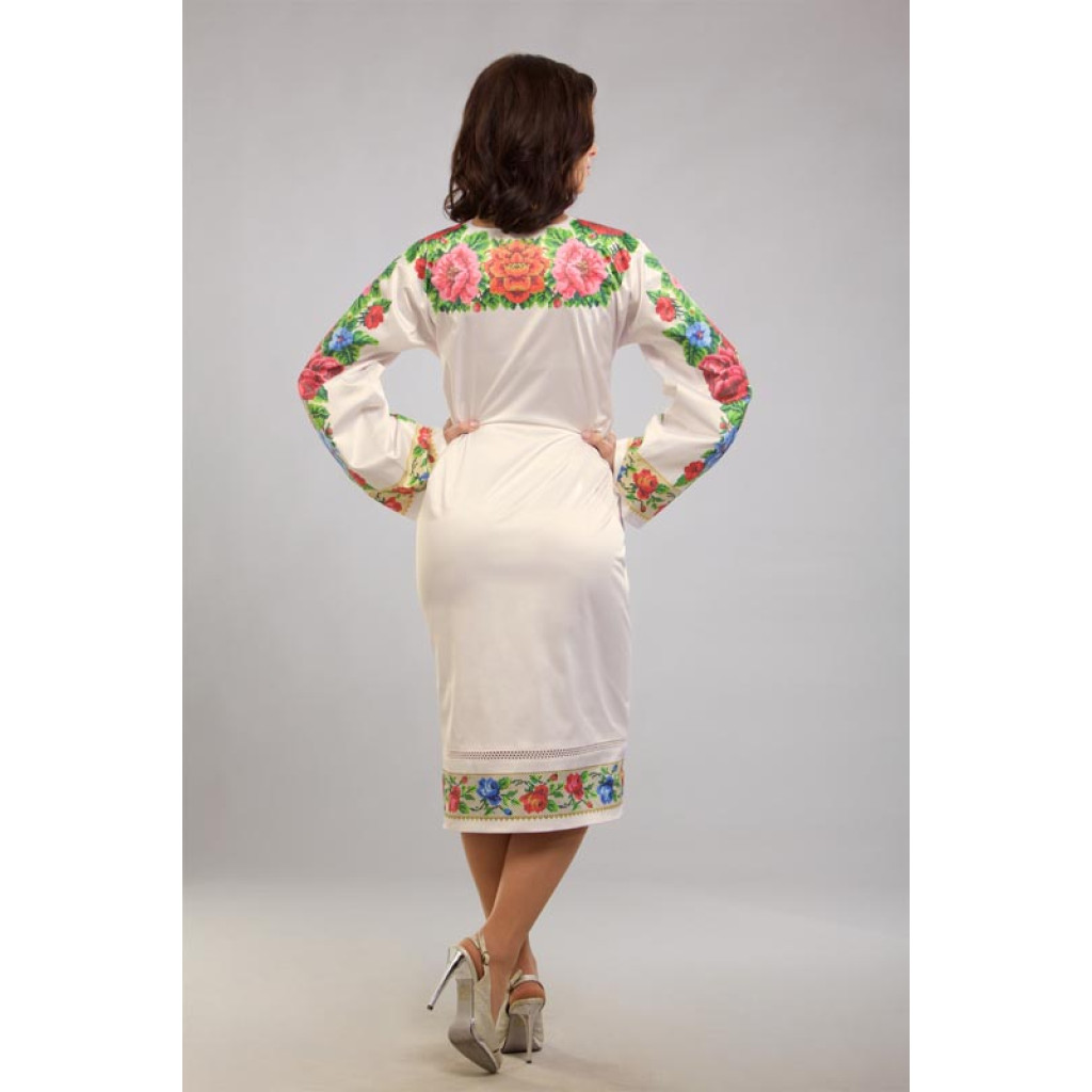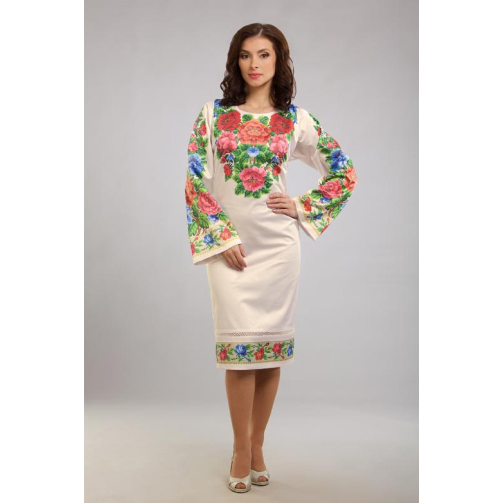 ПЛ005кМнннн Барвиста вишиванка Заготовка для вишивки - Сукня жіноча Багаті квіти. Буковинська р.42-54 атлас, бежевий