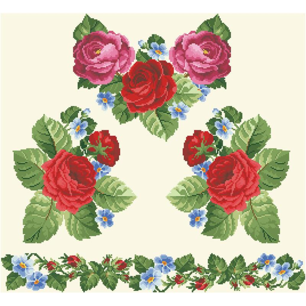 • відріз 150x120 см і відрізи 50x75 см (2 шт) із нанесеним малюнком-схемою
