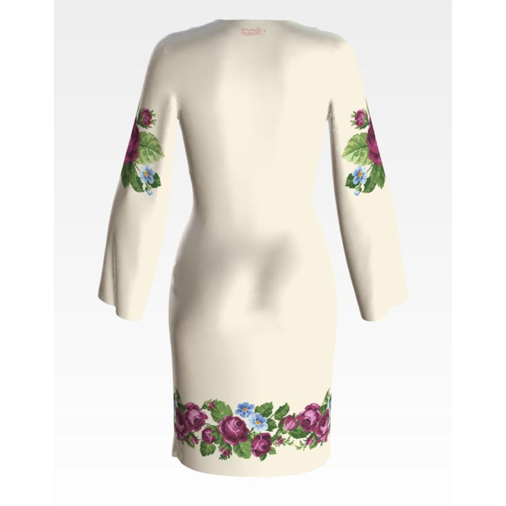 ПЛ010кМнннн Барвиста вишиванка Заготовка для вишивки - Сукня жіноча Лілові троянди, фіалки р.42-54 атлас, бежевий