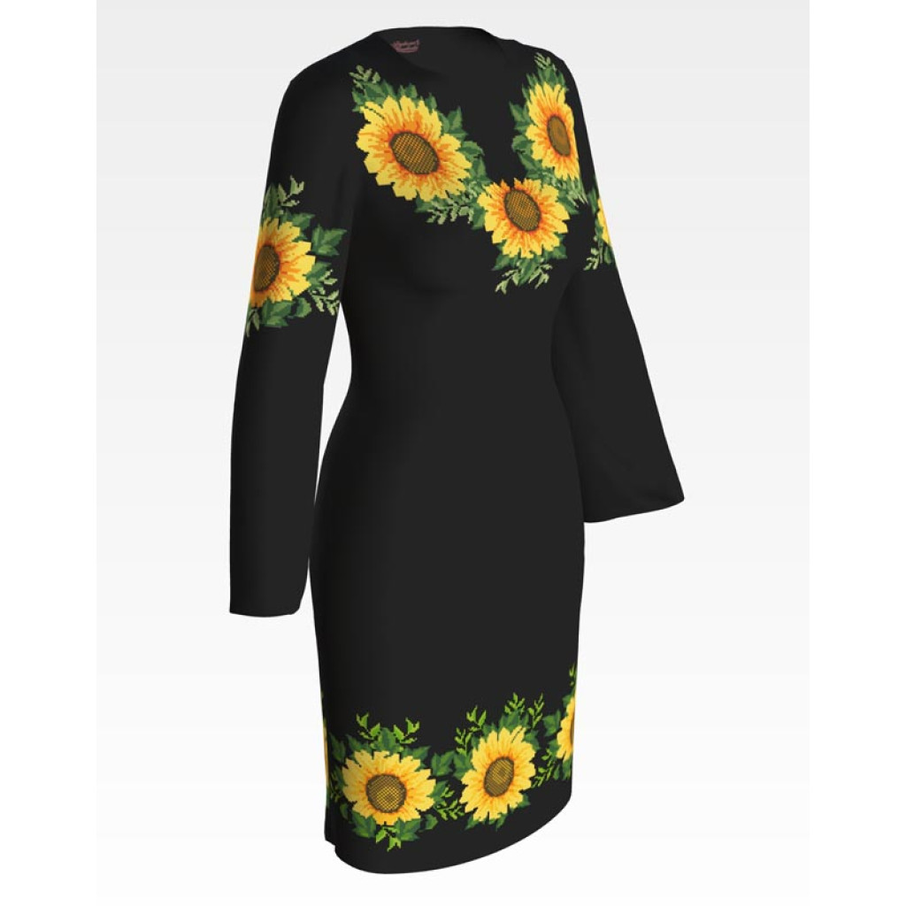 ПЛ012лЧнннн Барвиста вишиванка Заготовка для вишивки - Сукня жіноча Соняхи р.42-54 льон, чорний