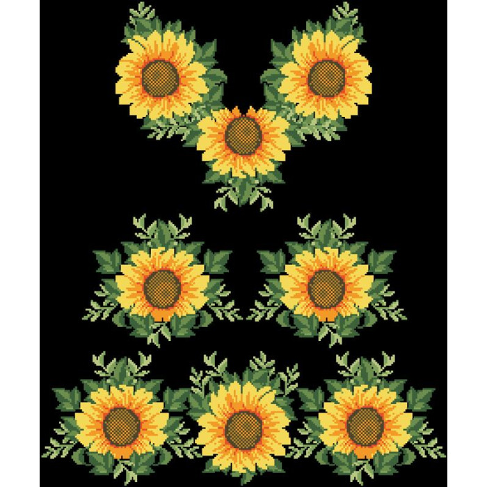 Заготовка для вишивки жіночої сукні Соняхи призначена для часткової зашивки бісером або нитками. Схема надрукована на льоні чорного кольору екологічно чистими стійкими фарбами, що не змиваються після прання. Відрізи розкроєні з урахуванням необхідних запасів для зручного вишивання та подальшого пошиття виробу.