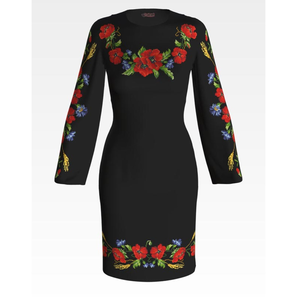 ПЛ013лЧнннн Барвиста вишиванка Заготовка для вишивки - Сукня жіноча Маки, волошки, колоски р.42-54 льон, чорний