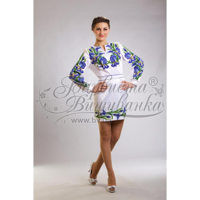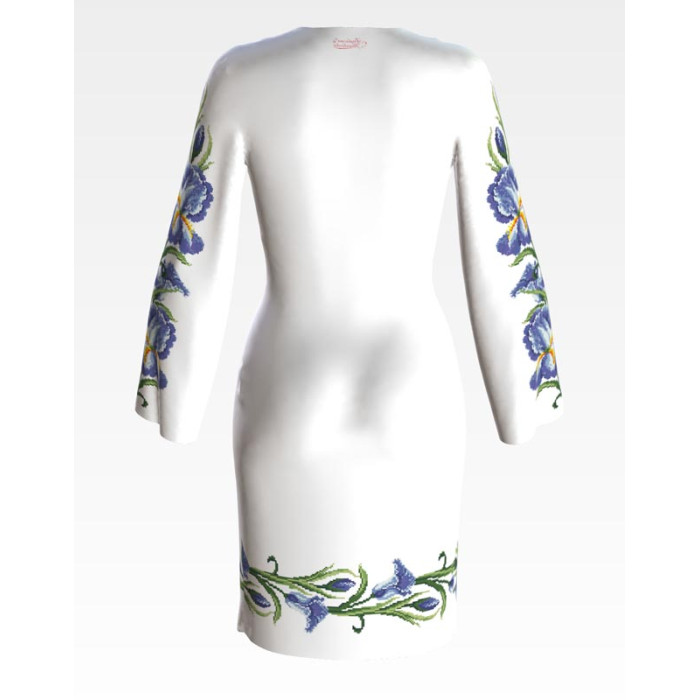 Заготовка для вишивки жіночої сукні Іриси призначена для часткової зашивки бісером або нитками. Схема надрукована на льоні білого кольору екологічно чистими стійкими фарбами, що не змиваються після прання. Відрізи розкроєні з урахуванням необхідних запасів для зручного вишивання та подальшого пошиття виробу.