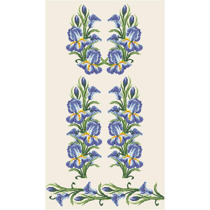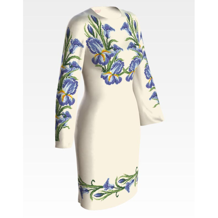 Заготовка для вишивки жіночої сукні Іриси призначена для часткової зашивки бісером або нитками. Схема надрукована на льоні бежевого кольору екологічно чистими стійкими фарбами, що не змиваються після прання. Відрізи розкроєні з урахуванням необхідних запасів для зручного вишивання та подальшого пошиття виробу.