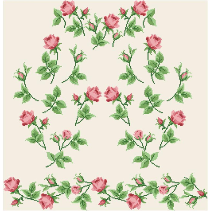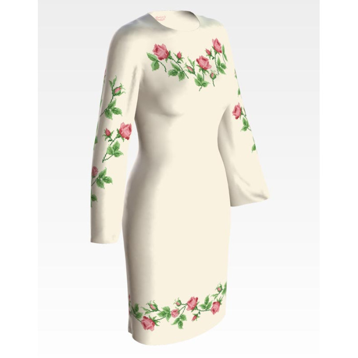 Заготовка для вишивки жіночої сукні Тендітні троянди призначена для часткової зашивки бісером або нитками. Схема надрукована на льоні бежевого кольору екологічно чистими стійкими фарбами, що не змиваються після прання. Відрізи розкроєні з урахуванням необхідних запасів для зручного вишивання та подальшого пошиття виробу.