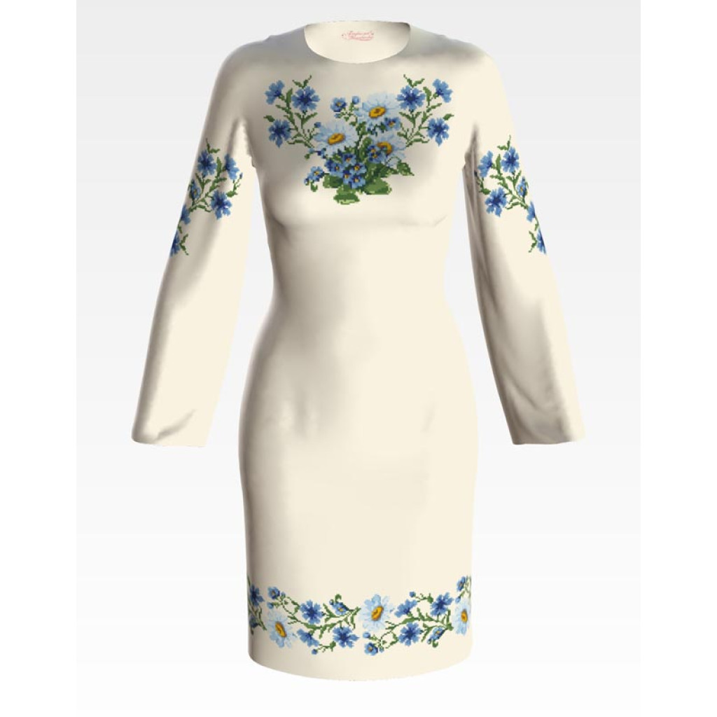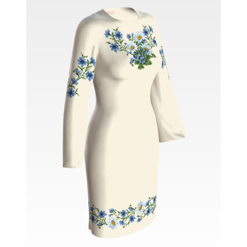 Заготовка для вишивки жіночої сукні Ромашки і волошки призначена для часткової зашивки бісером або нитками. Схема надрукована на атлас-котоні бежевого кольору екологічно чистими стійкими фарбами, що не змиваються після прання. Відрізи розкроєні з урахуванням необхідних запасів для зручного вишивання та подальшого пошиття виробу.