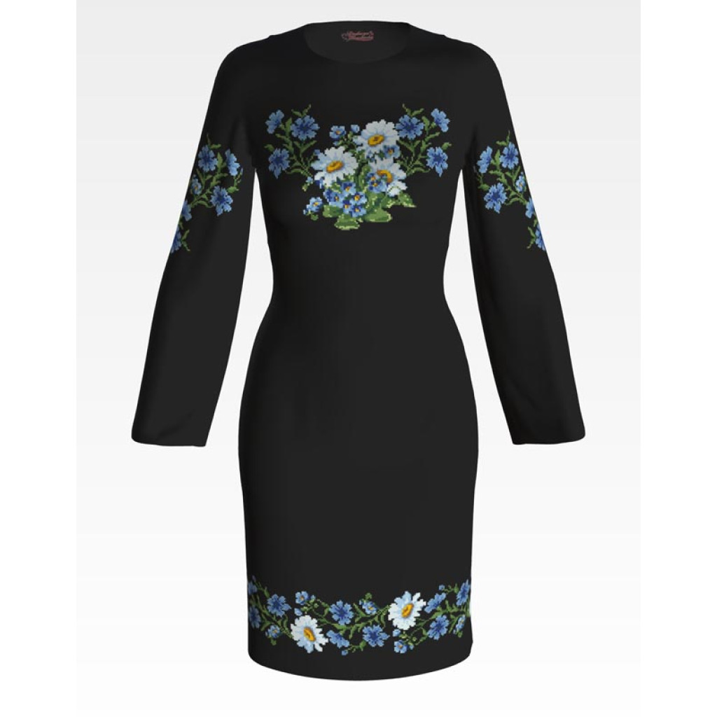 ПЛ019лЧнннн Барвиста вишиванка Заготовка для вишивки - Сукня жіноча Ромашки і волошки р.42-54 льон, чорний