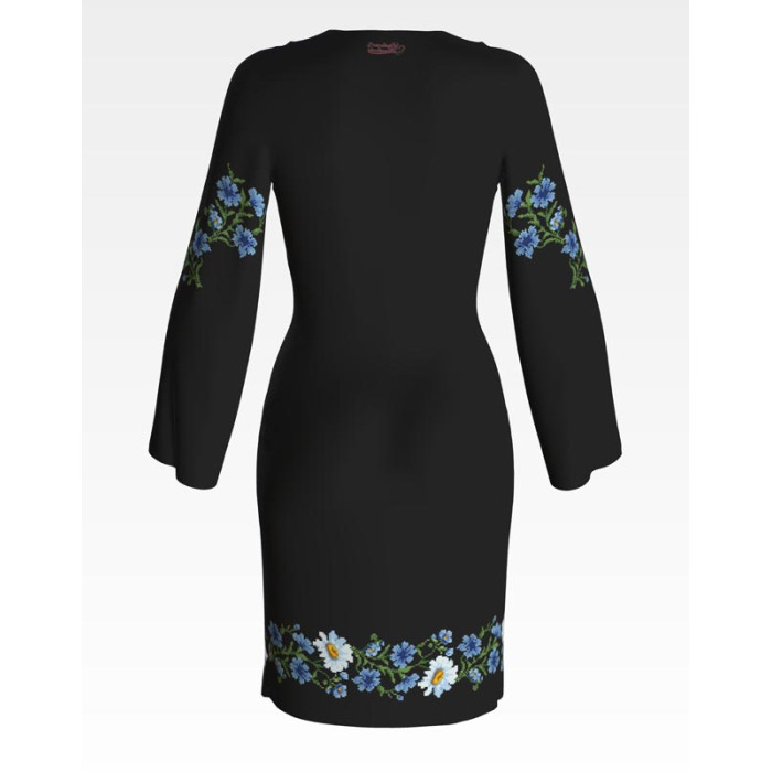 ПЛ019шЧнннн Барвиста вишиванка Заготовка для вишивки - Сукня жіноча Ромашки і волошки р.42-54 шовк, чорний
