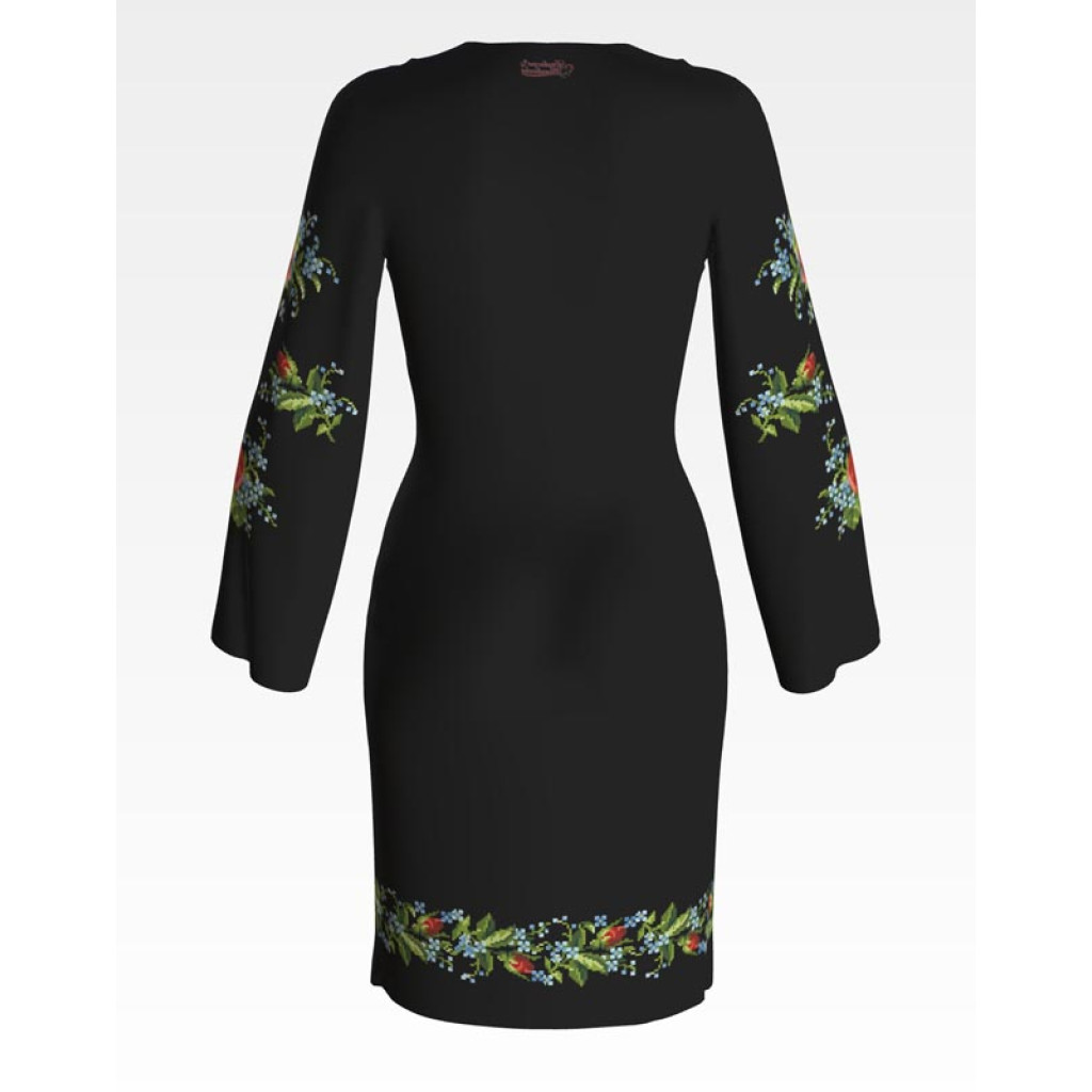 ПЛ020кЧнннн Барвиста вишиванка Заготовка для вишивки - Сукня жіноча Вишукані троянди, незабудки р.42-54 атлас, чорний