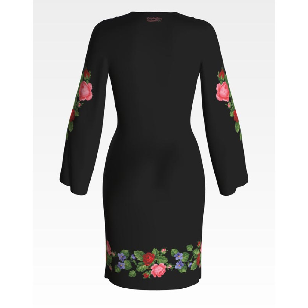ПЛ021дЧнннн Барвиста вишиванка Заготовка для вишивки - Сукня жіноча Троянди, фіалки, конвалії р.42-54 домоткане полотно, чорний