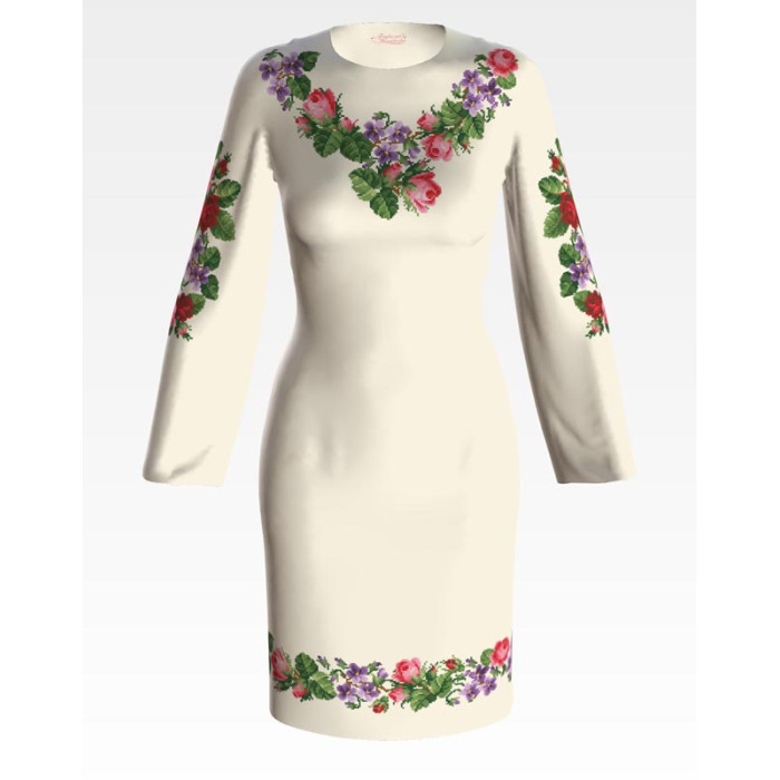 ПЛ022кМнннн Барвиста вишиванка Заготовка для вишивки - Сукня жіноча Троянди і фіалки р.42-54 атлас, бежевий