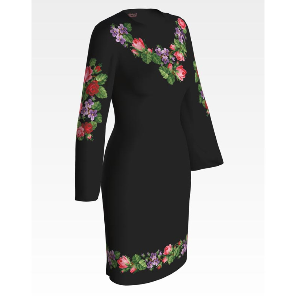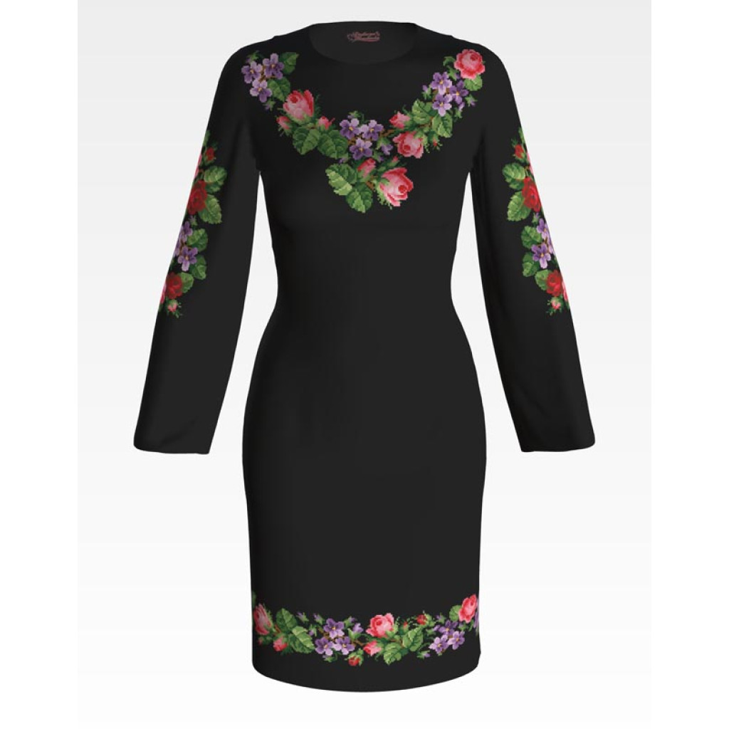 ПЛ022шЧнннн Барвиста вишиванка Заготовка для вишивки - Сукня жіноча Троянди і фіалки р.42-54 шовк, чорний