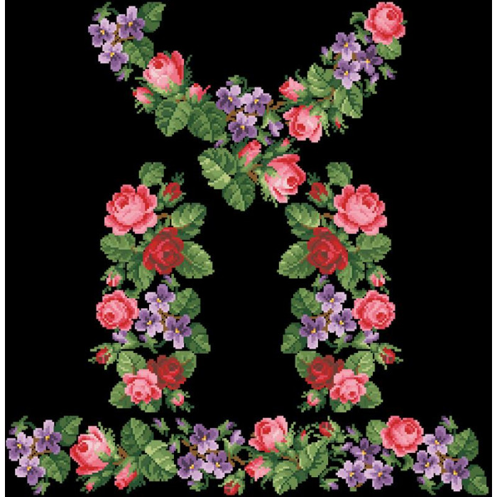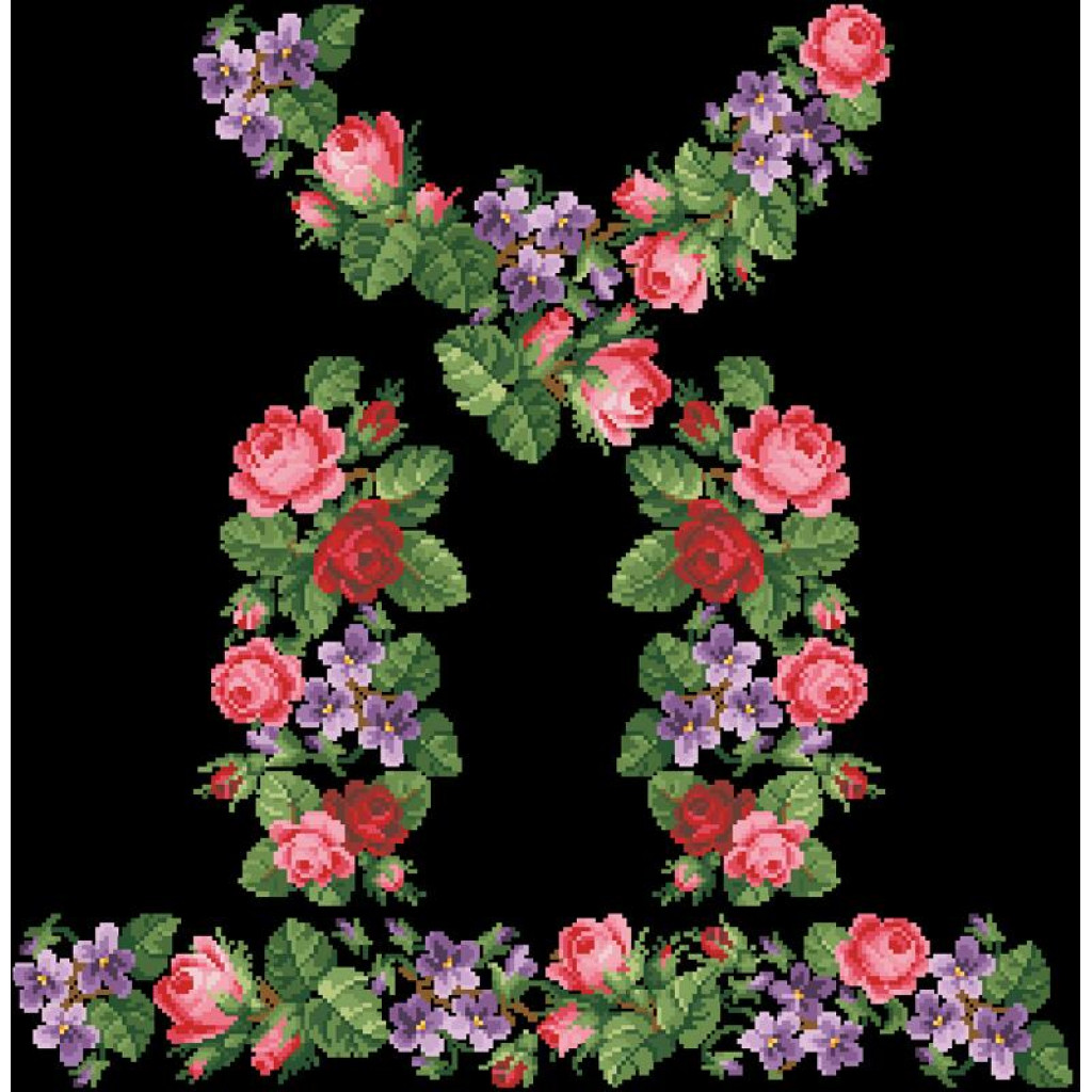 Заготовка для вишивки жіночої сукні Троянди і фіалки призначена для часткової зашивки бісером або нитками. Схема надрукована на шовковій тканині чорного кольору екологічно чистими стійкими фарбами, що не змиваються після прання. Відрізи розкроєні з урахуванням запасів для зручного вишивання та подальшого пошиття виробу.