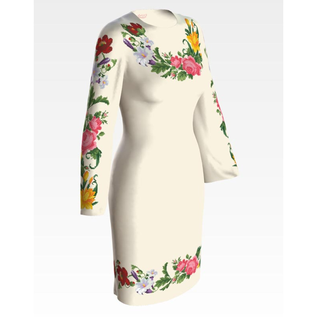 ПЛ023кМнннн Барвиста вишиванка Заготовка для вишивки - Сукня жіноча Королівські квіти р.42-54 атлас, бежевий