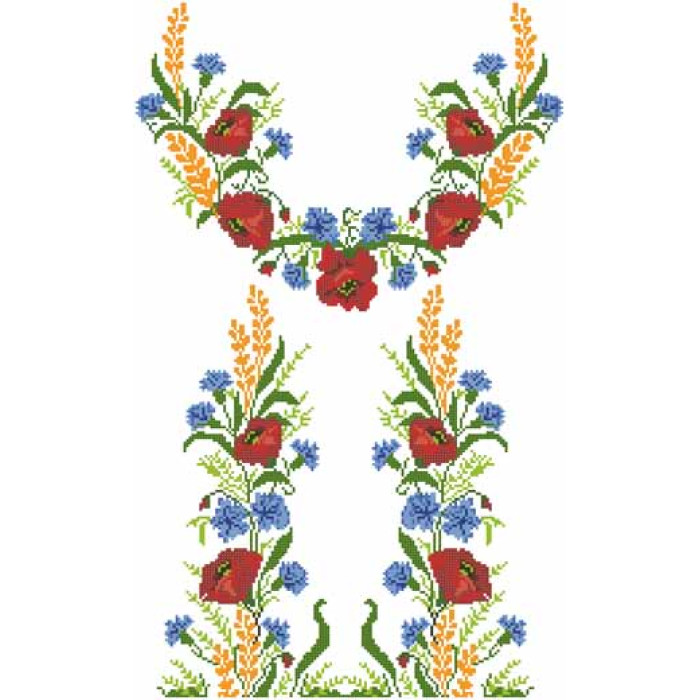 Заготовка для вишивки жіночої сукні Польові квіти призначена для часткової зашивки бісером або нитками. Схема надрукована на льоні білого кольору екологічно чистими стійкими фарбами, що не змиваються після прання. Відрізи розкроєні з урахуванням необхідних запасів для зручного вишивання та подальшого пошиття виробу.