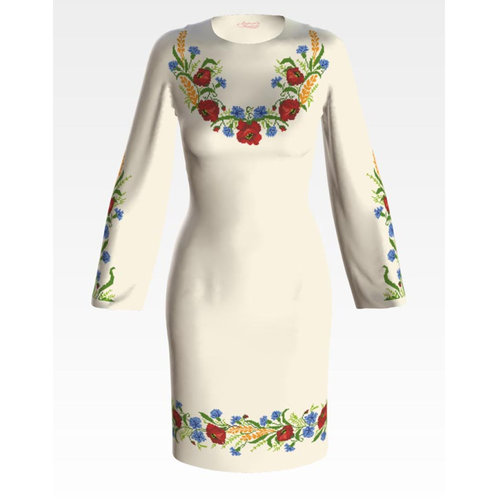 ПЛ024лМнннн Барвиста вишиванка Заготовка для вишивки - Сукня жіноча Польові квіти р.42-54 льон, бежевий
