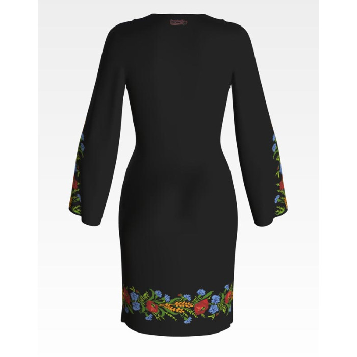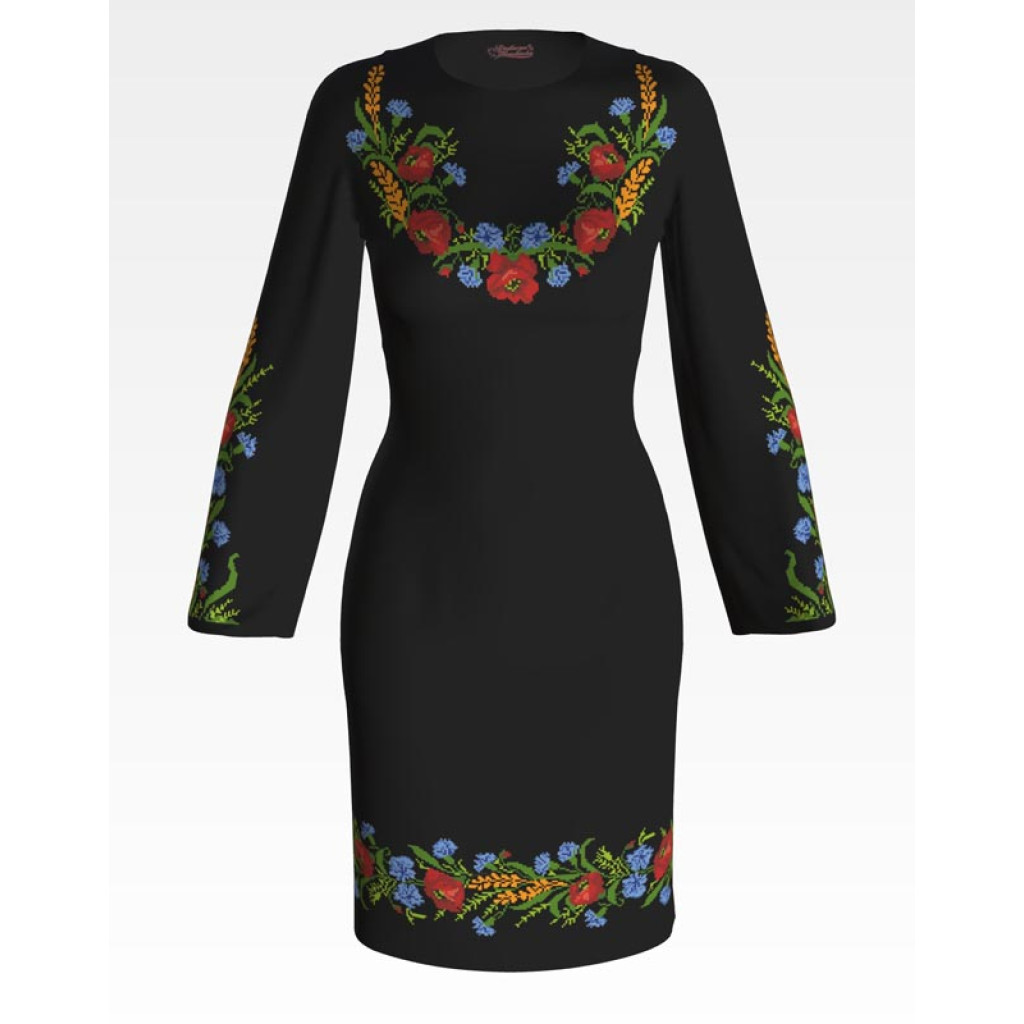ПЛ024шЧнннн Барвиста вишиванка Заготовка для вишивки - Сукня жіноча Польові квіти р.42-54 шовк, чорний