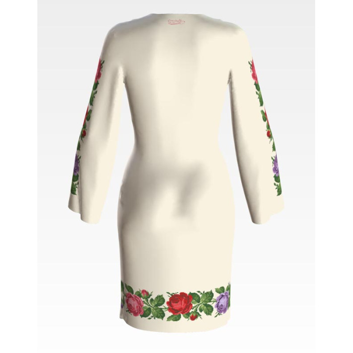 ПЛ027дМнннн Барвиста вишиванка Заготовка для вишивки - Сукня жіноча Романтичні троянди р.42-54 домоткане полотно, бежевий