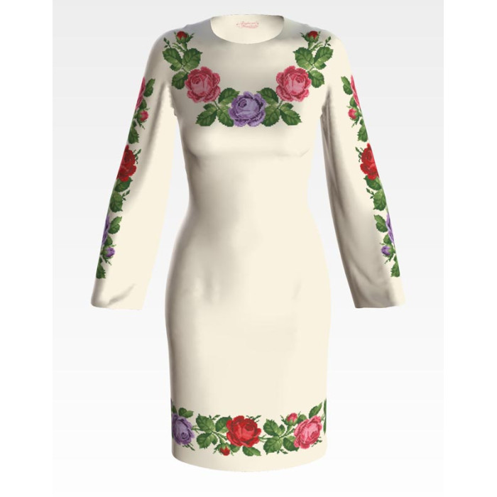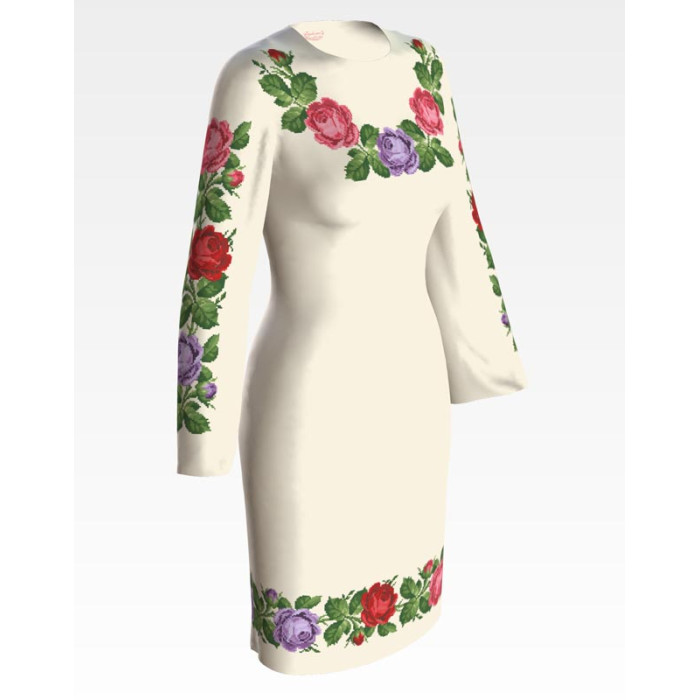ПЛ027кМнннн Барвиста вишиванка Заготовка для вишивки - Сукня жіноча Романтичні троянди р.42-54 атлас, бежевий
