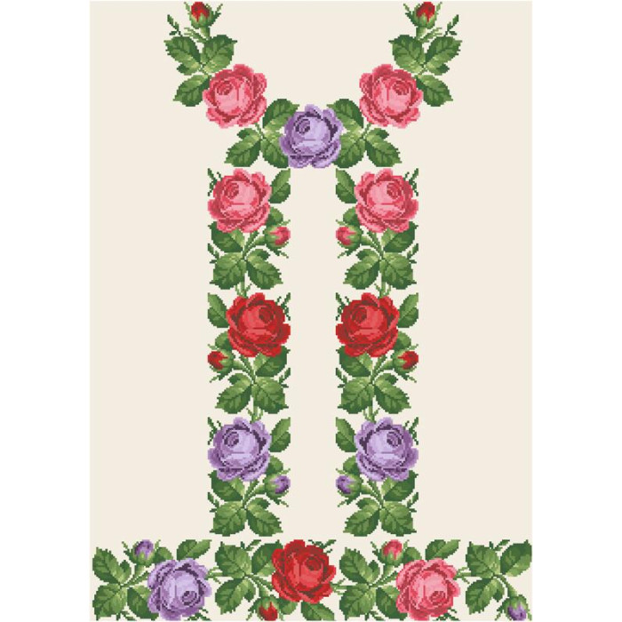 Заготовка для вишивки жіночої сукні Романтичні троянди призначена для часткової зашивки бісером або нитками. Схема надрукована на атлас-котоні бежевого кольору екологічно чистими стійкими фарбами, що не змиваються після прання. Відрізи розкроєні з урахуванням необхідних запасів для зручного вишивання та подальшого пошиття виробу.