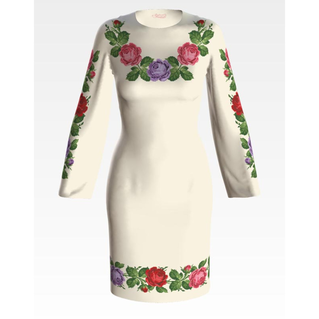 ПЛ027лМнннн Барвиста вишиванка Заготовка для вишивки - Сукня жіноча Романтичні троянди р.42-54 льон, бежевий