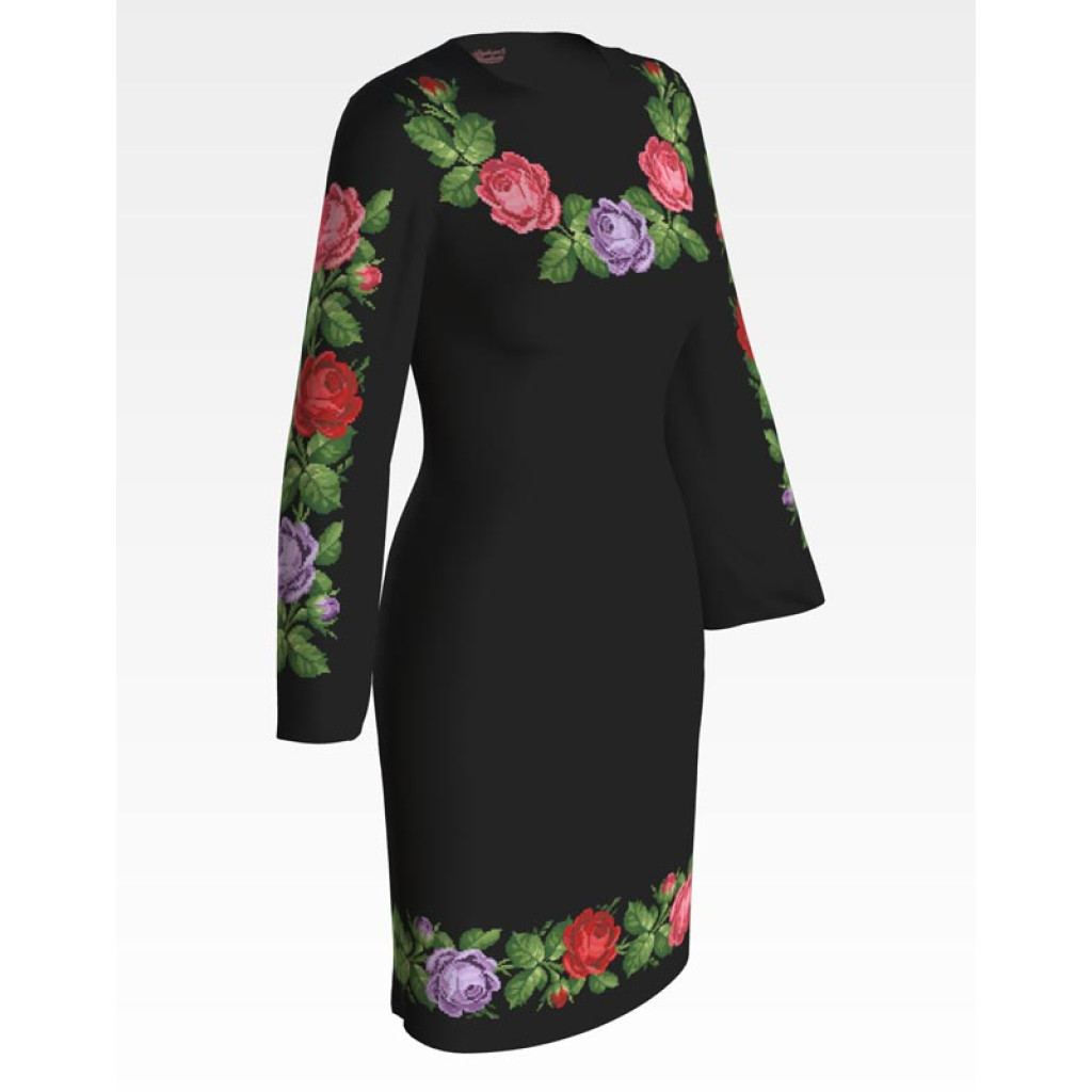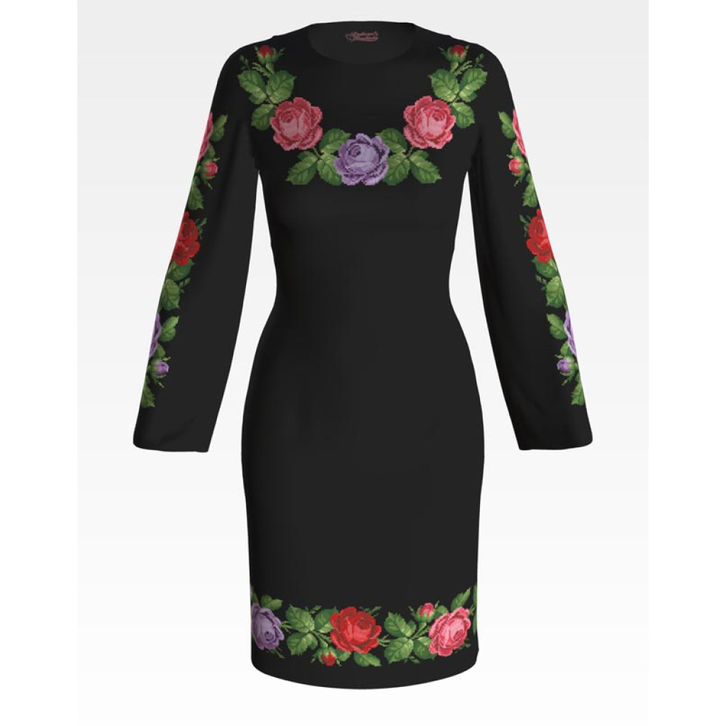 ПЛ027шЧнннн Барвиста вишиванка Заготовка для вишивки - Сукня жіноча Романтичні троянди р.42-54 шовк, чорний