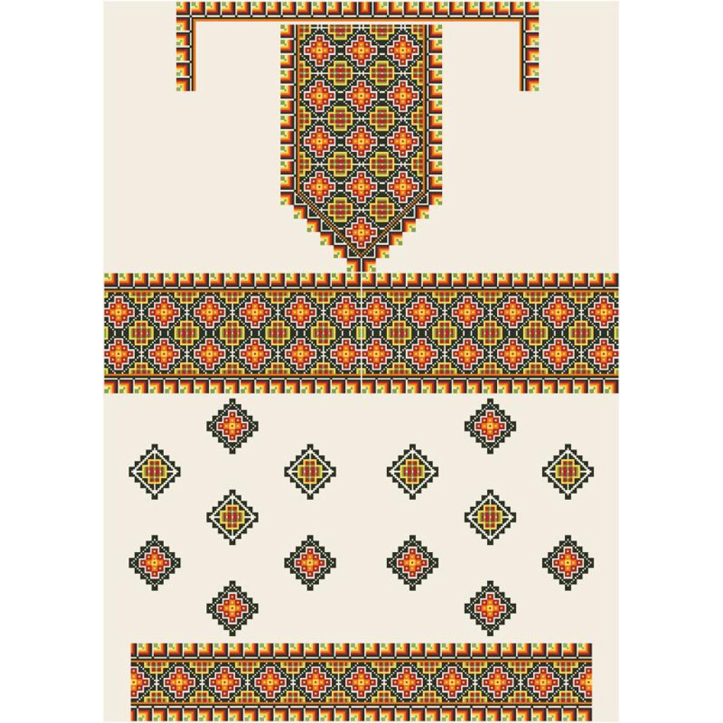 Заготовка для вишивки жіночої сукні Прикарпаття призначена для часткової зашивки бісером або нитками. Схема надрукована на атлас-котоні бежевого кольору екологічно чистими стійкими фарбами, що не змиваються після прання. Відрізи розкроєні з урахуванням необхідних запасів для зручного вишивання та подальшого пошиття виробу.