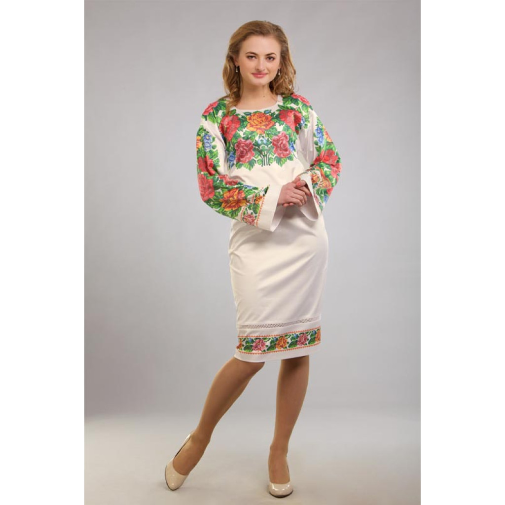 ПЛ030кМнннн Барвиста вишиванка Заготовка для вишивки - Сукня жіноча Вишукана. Буковинська р.42-54 атлас, бежевий