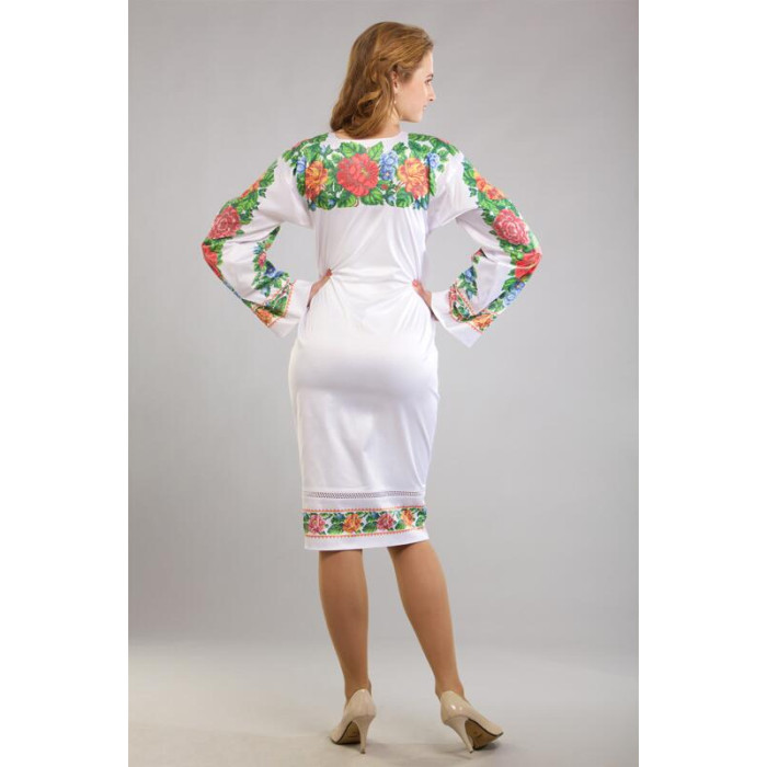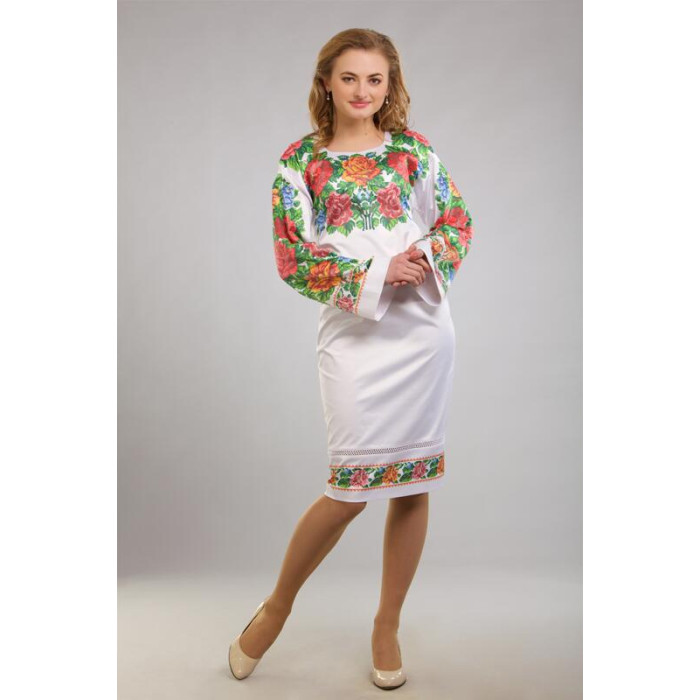 ПЛ030пБнннн Барвиста вишиванка Заготовка для вишивки - Сукня жіноча Вишукана. Буковинська р.42-54 габардин, білий
