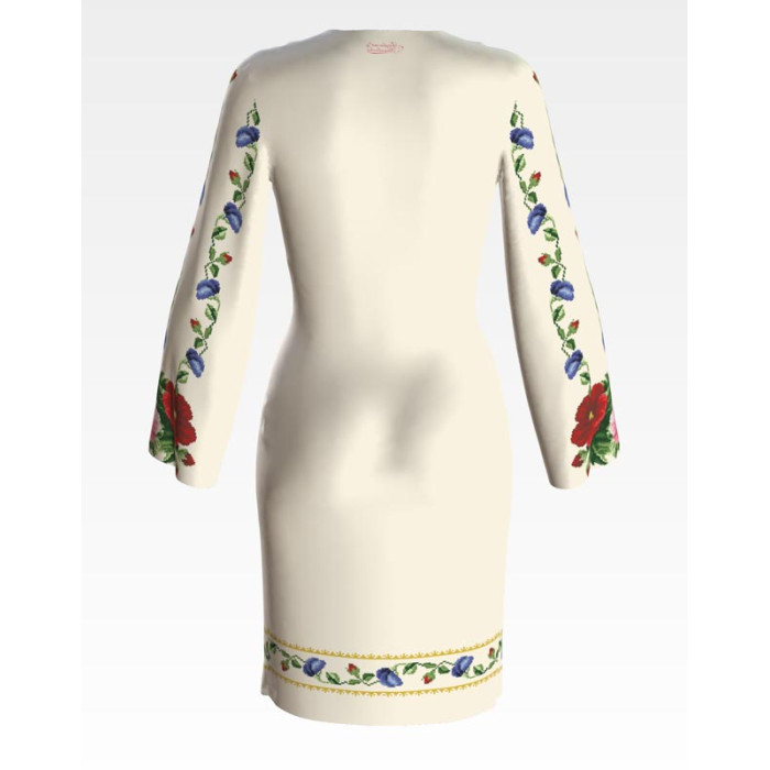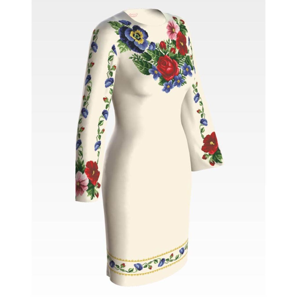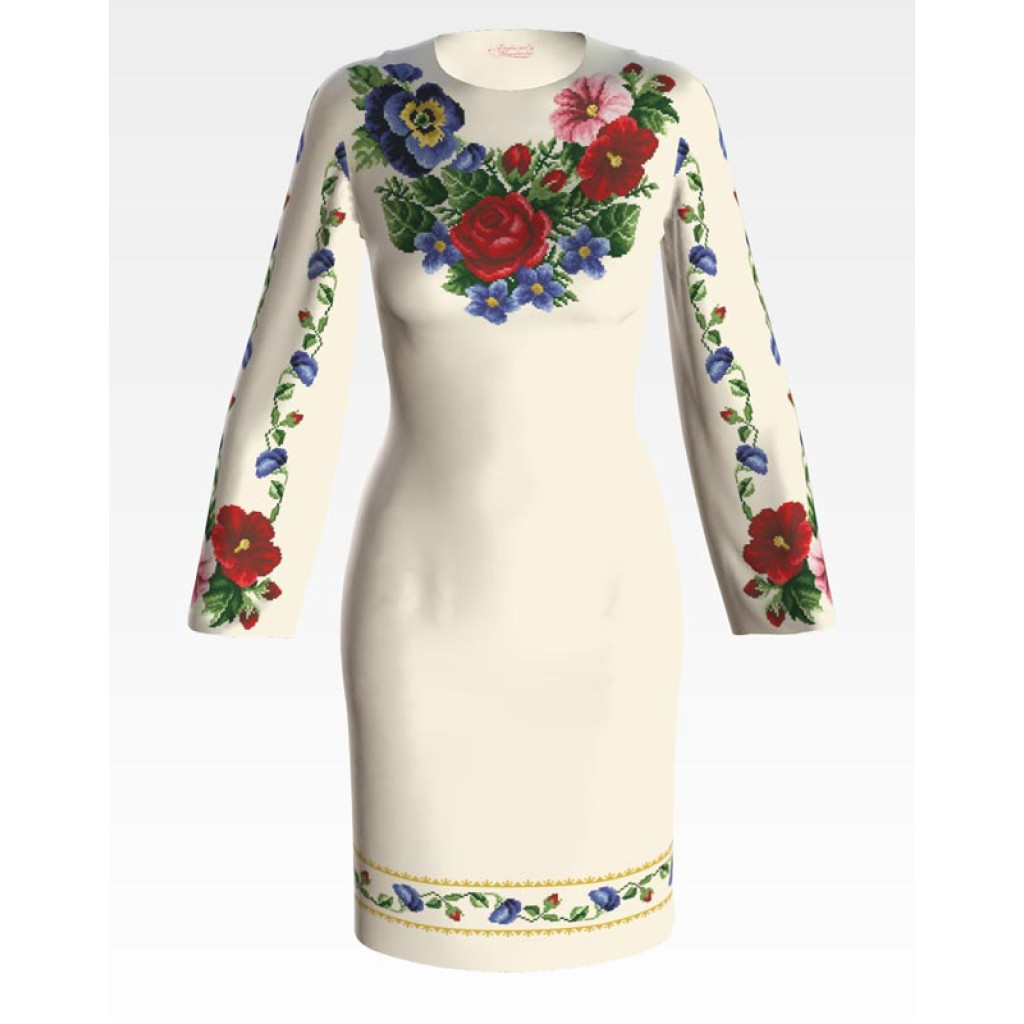 ПЛ035кМнннн Барвиста вишиванка Заготовка для вишивки - Сукня жіноча Мальви, троянди, братки р.42-54 атлас, бежевий