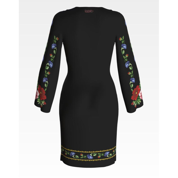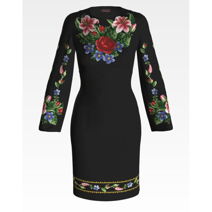 ПЛ036лЧнннн Барвиста вишиванка Заготовка для вишивки - Сукня жіноча Лілеї, троянди, незабудки р.42-54 льон, чорний