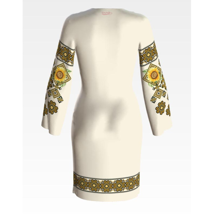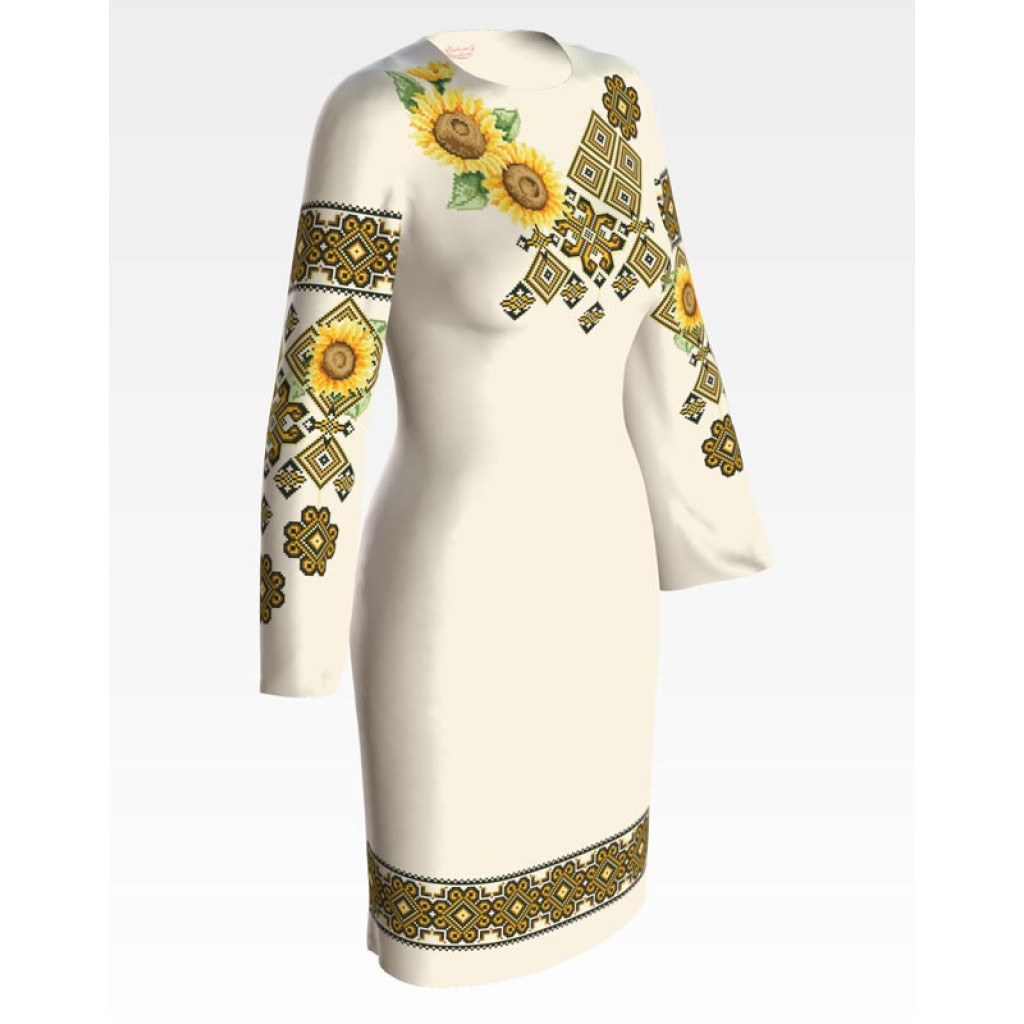Заготовка для вишивки жіночої сукні Сонячна призначена для часткової зашивки бісером або нитками. Схема надрукована на льоні бежевого кольору екологічно чистими стійкими фарбами, що не змиваються після прання. Відрізи розкроєні з урахуванням необхідних запасів для зручного вишивання та подальшого пошиття виробу.