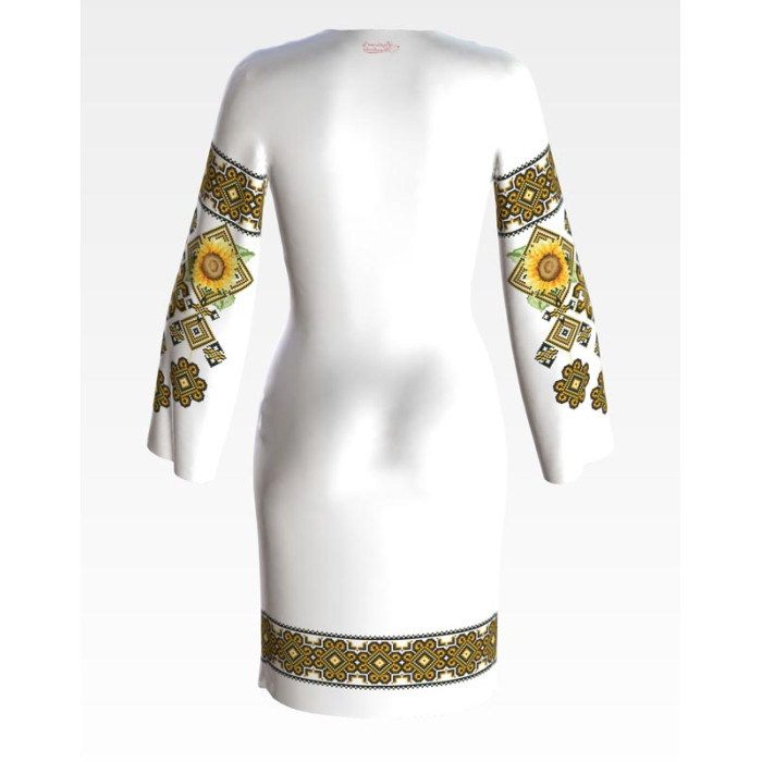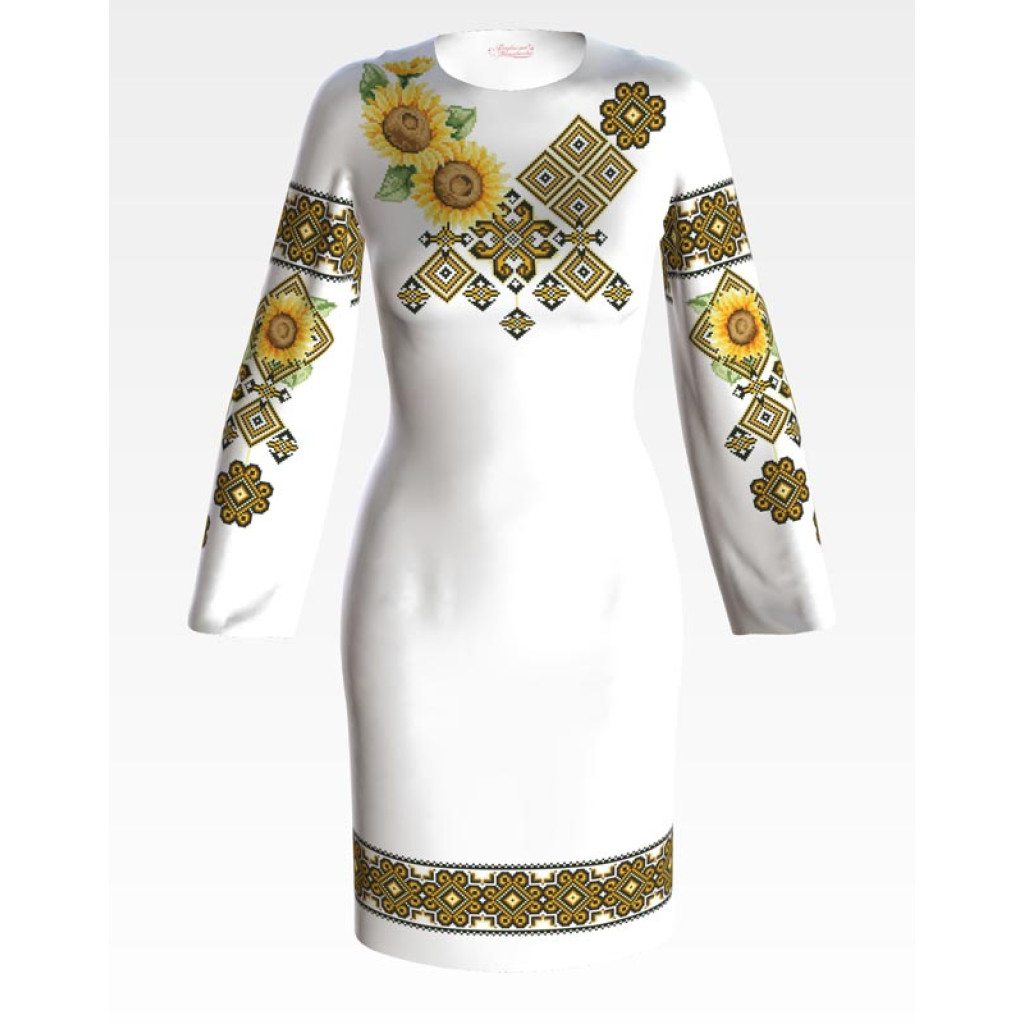 Заготовка для вишивки жіночої сукні Сонячна призначена для часткової зашивки бісером або нитками. Схема надрукована на білому габардині екологічно чистими стійкими фарбами, що не змиваються після прання. Відрізи розкроєні з урахуванням необхідних запасів для зручного вишивання та подальшого пошиття виробу.