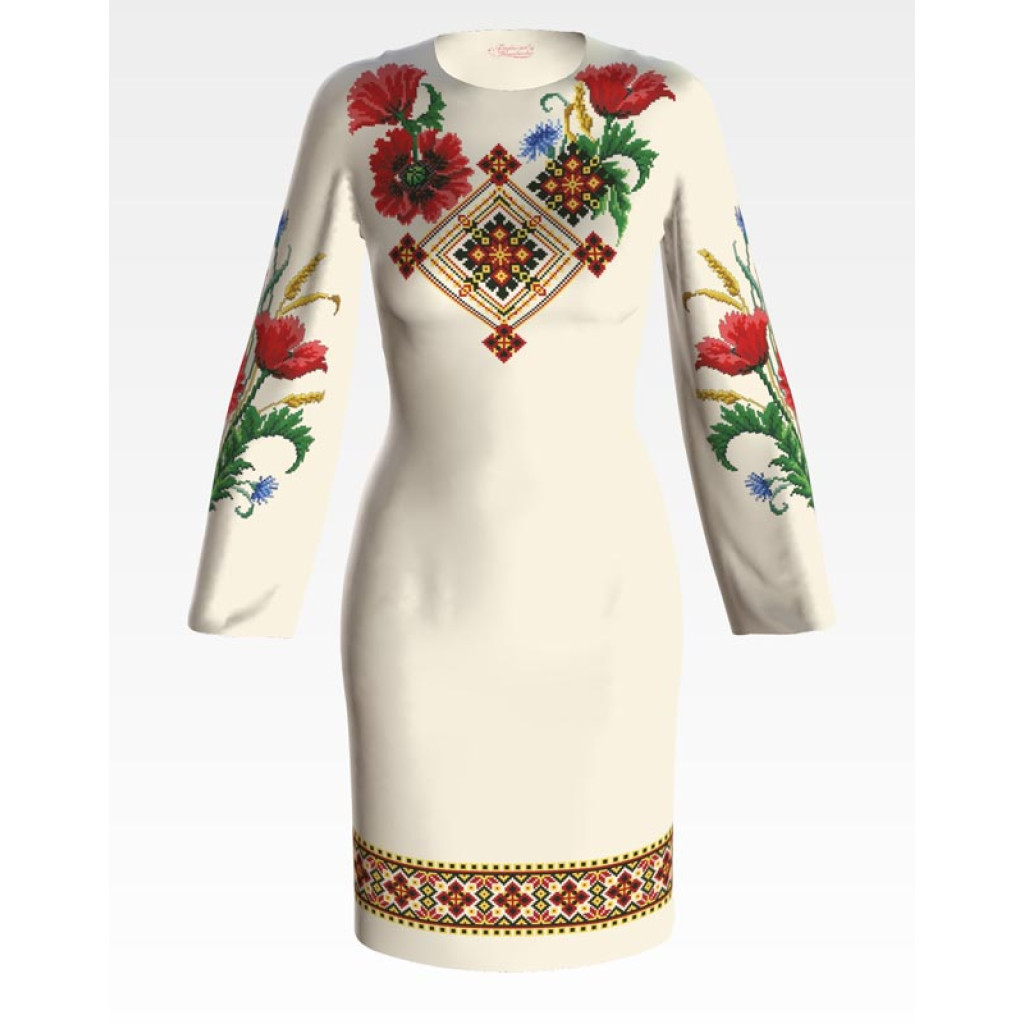 ПЛ039кМнннн Барвиста вишиванка Заготовка для вишивки - Сукня жіноча Український степ р.42-54 атлас, бежевий