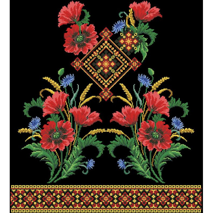Заготовка для вишивки жіночої сукні Український степ призначена для часткової зашивки бісером або нитками. Схема надрукована на шовковій тканині чорного кольору екологічно чистими стійкими фарбами, що не змиваються після прання. Відрізи розкроєні з урахуванням запасів для зручного вишивання та подальшого пошиття виробу.